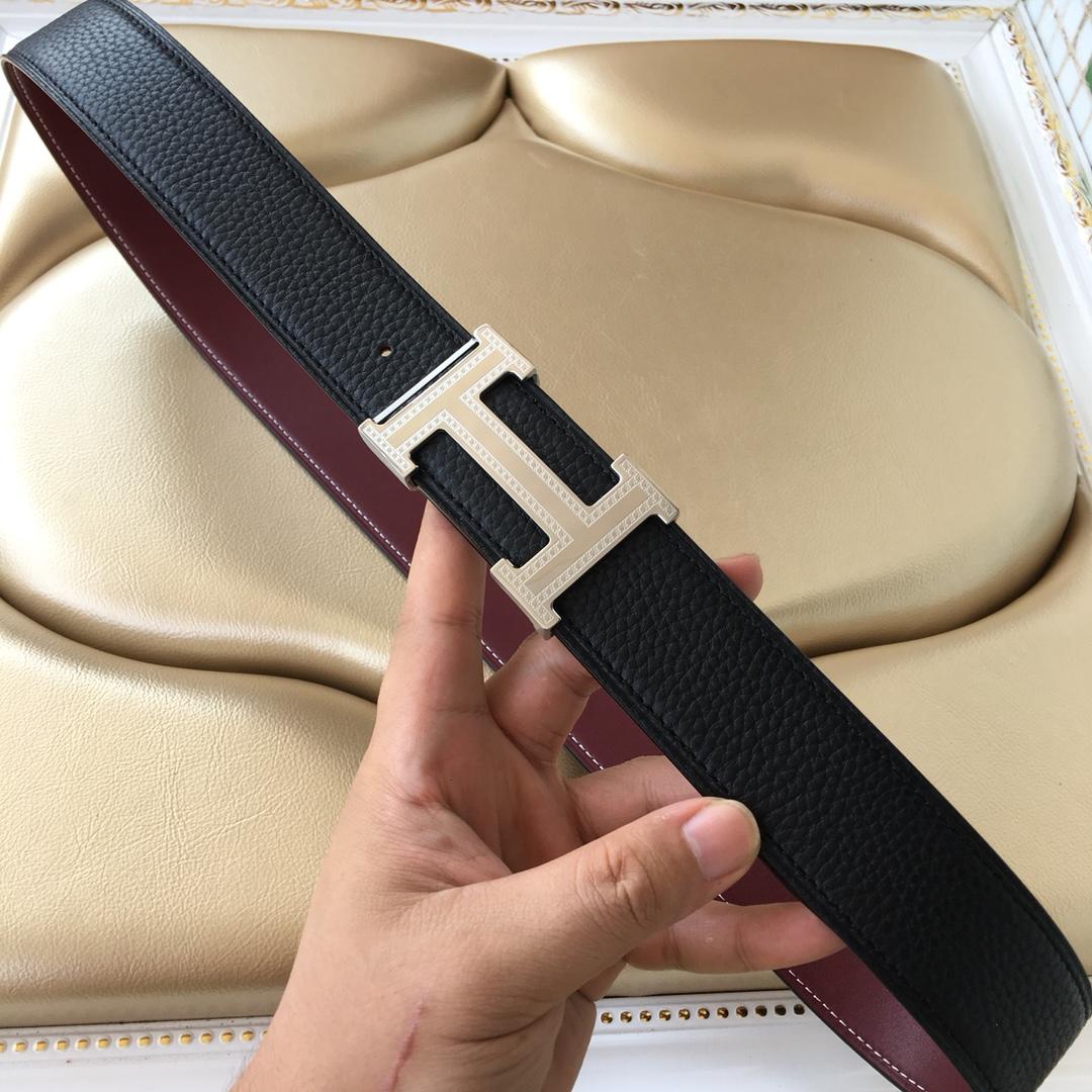 Hermes Reversible Leather Men Belt With Silver Buckle 035