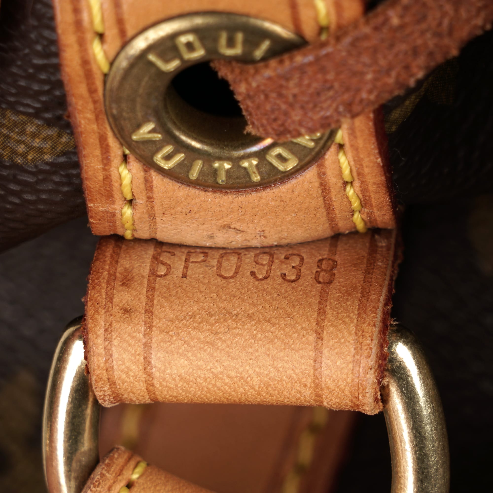 This spacious shoulder bag is crafted from Louis Vuitton's signature Monogram-coated canvas with natural vachetta leather trim. gold-colored hardware. and a brown textile lining. The adjustable leather strap allows the bag to be carried comfortably over the shoulder or by hand.