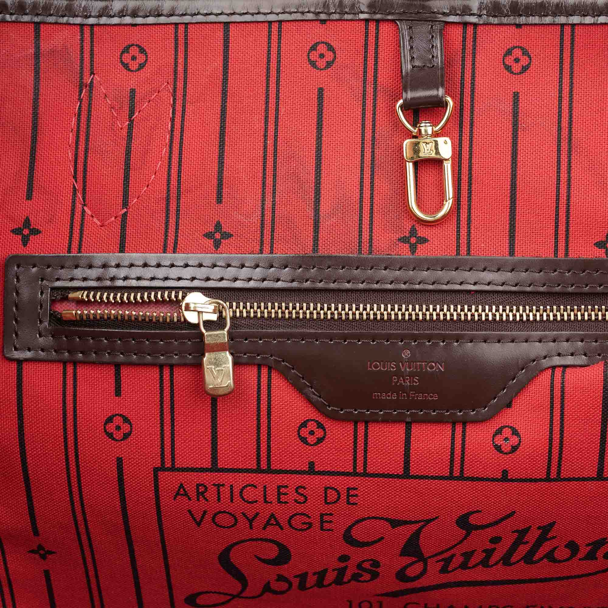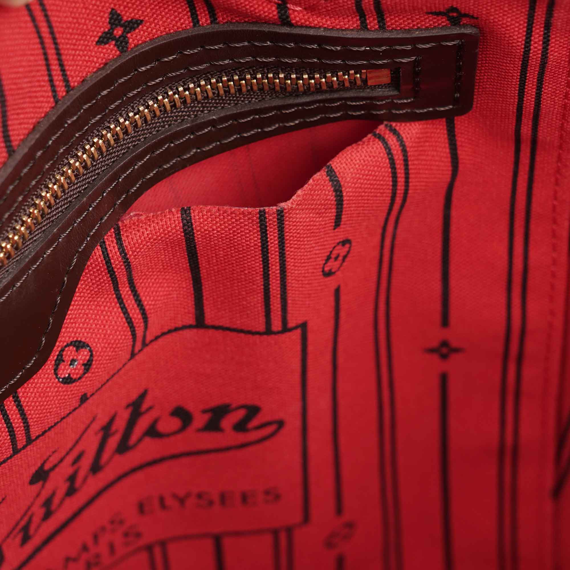 The Louis Vuitton Neverfull MM Bag is one of Louis Vuitton's most popular bags and is today considered to be a classic. And it's easy to understand why. This lovely Louis Vuitton bag holds many great qualities. It's feminine. elegant. and practical at the same time. It's ultralight but still manages to carry a lot of weight. The combination of the classic Damier Ebene canvas. brown leather details. and gold-colored hardware is a perfect match. The size makes this bag ideal for everyday use. travel. and work. Don't miss out!