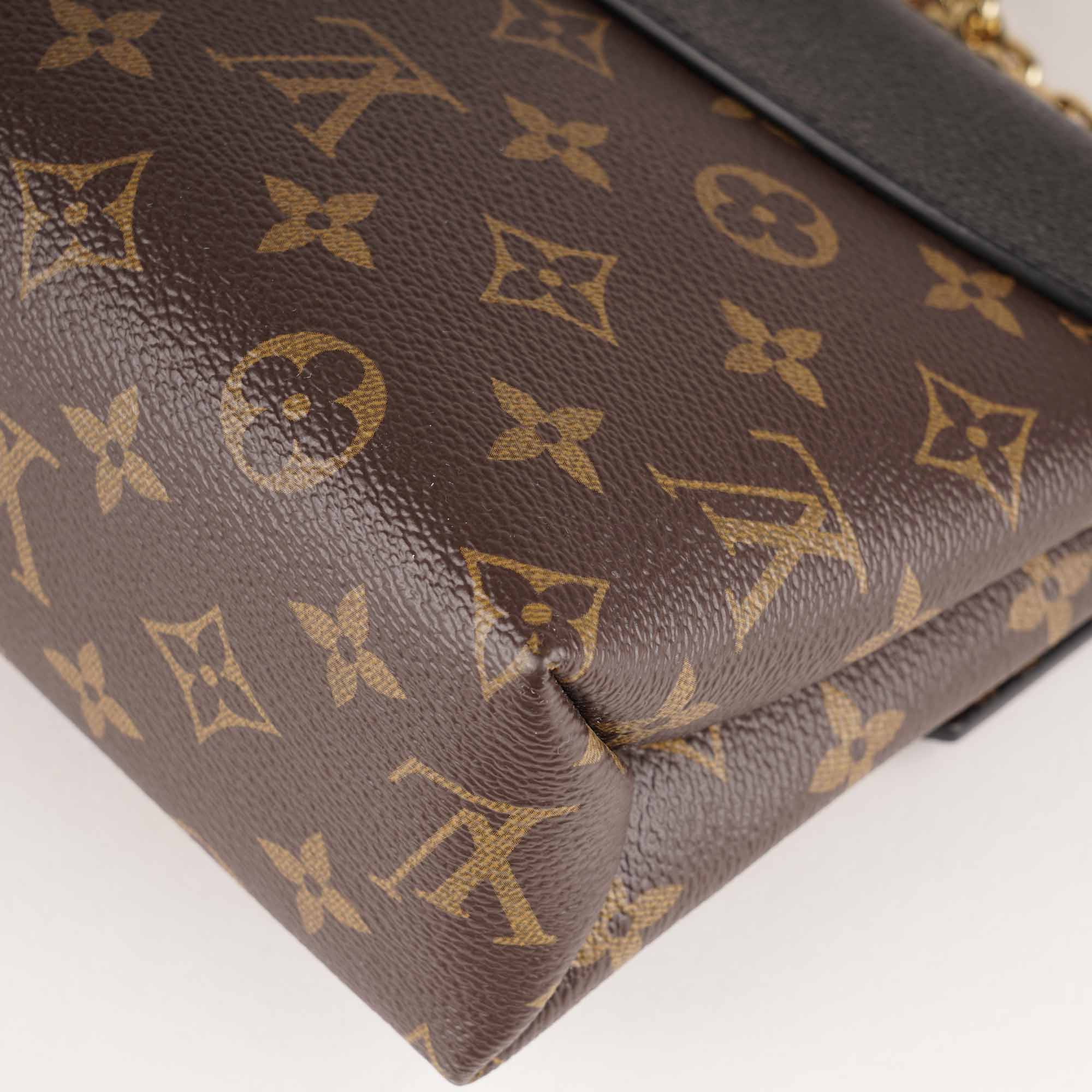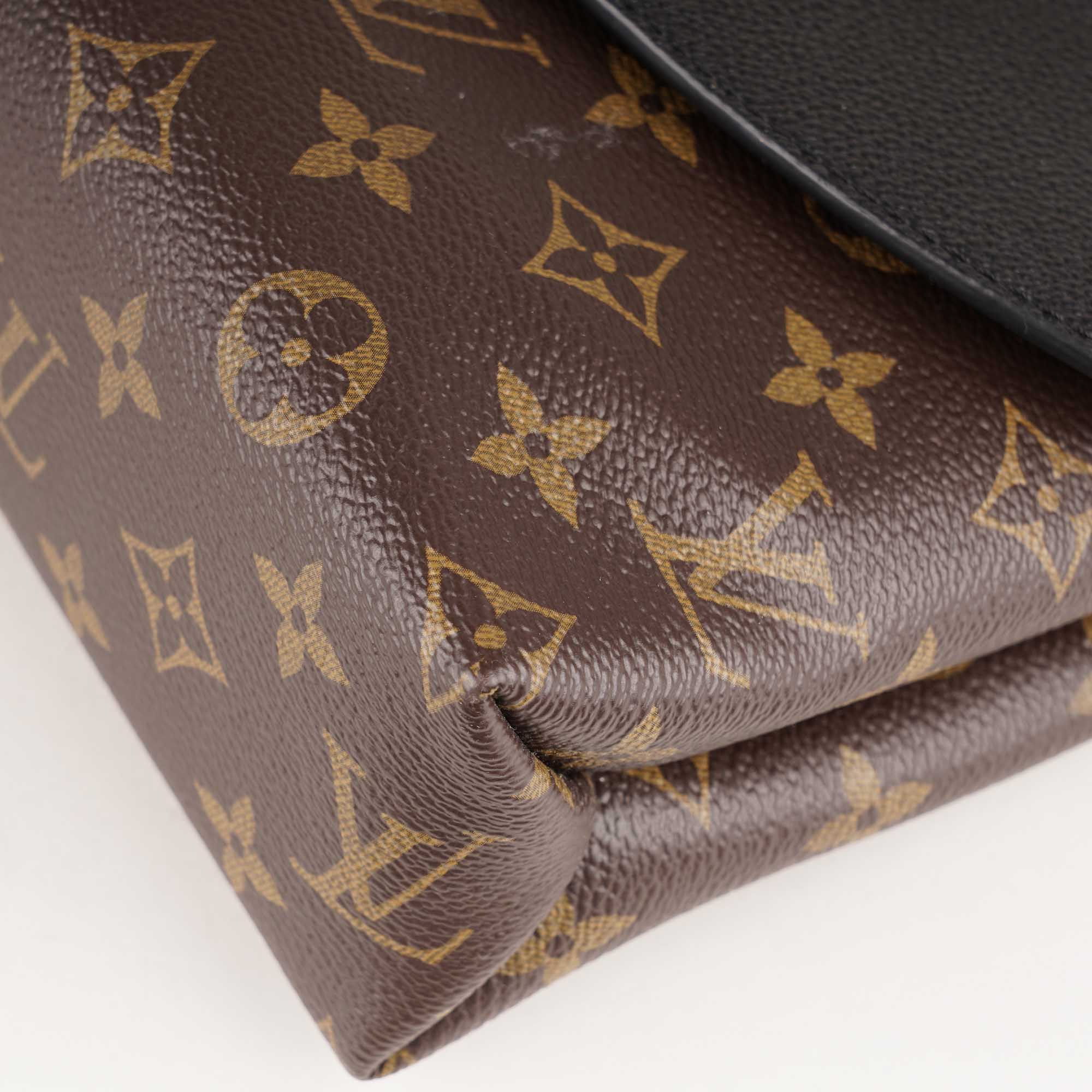 This is an authentic Louis Vuitton Saint Placide handbag in black leather and Monogram canvas.
