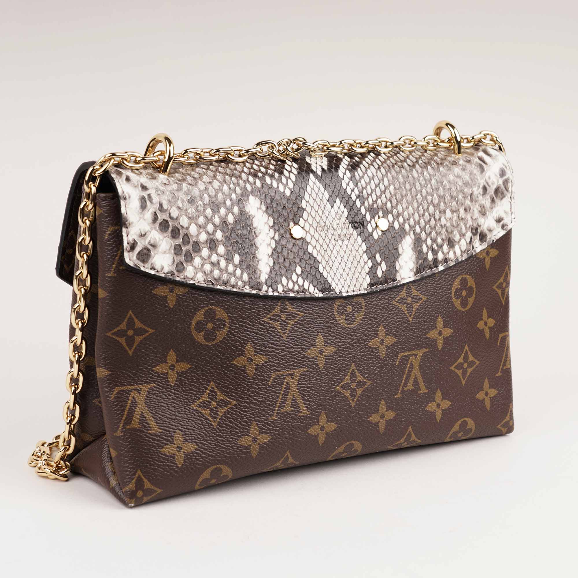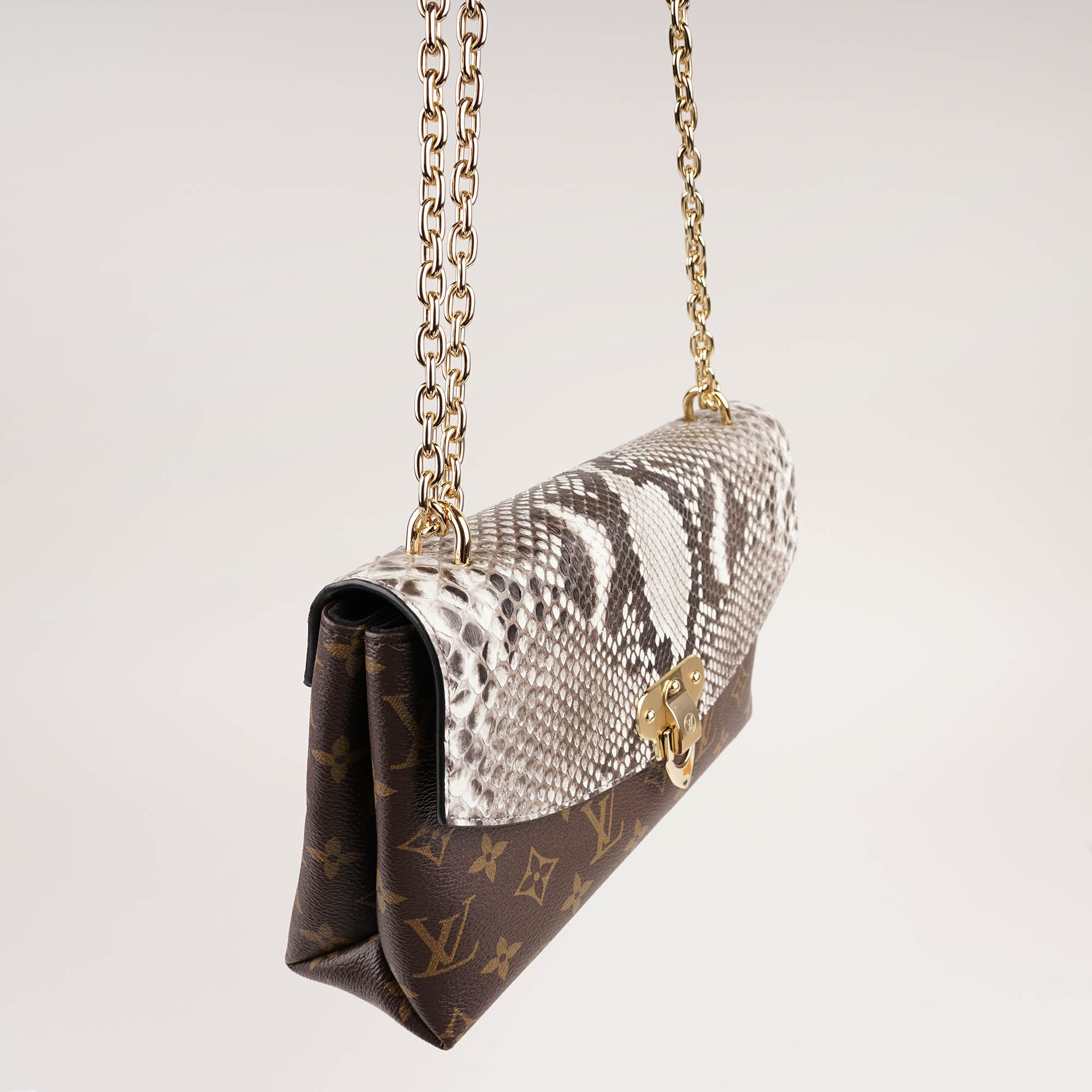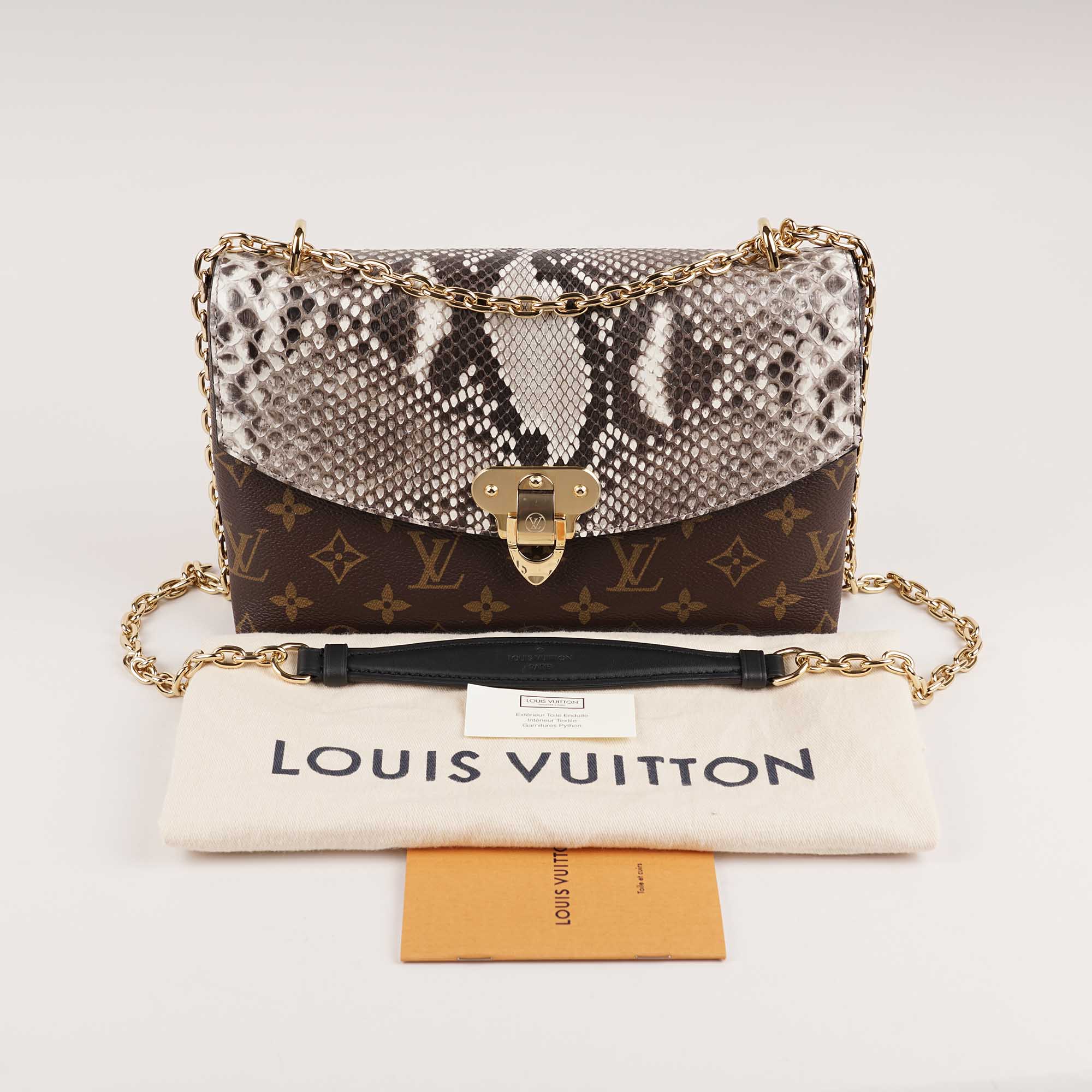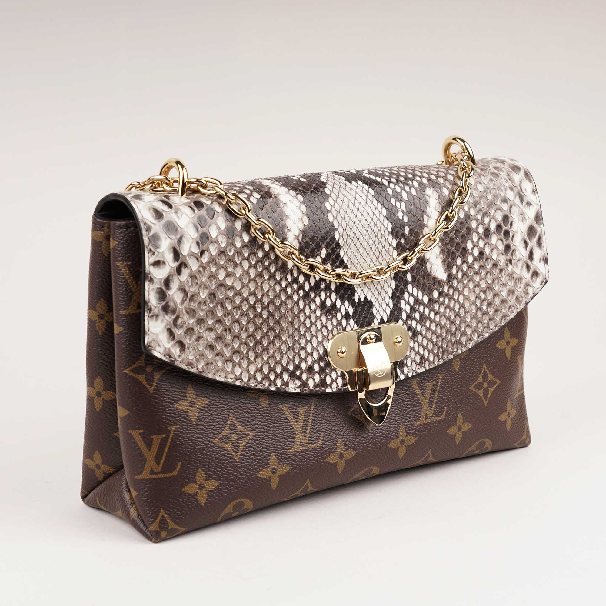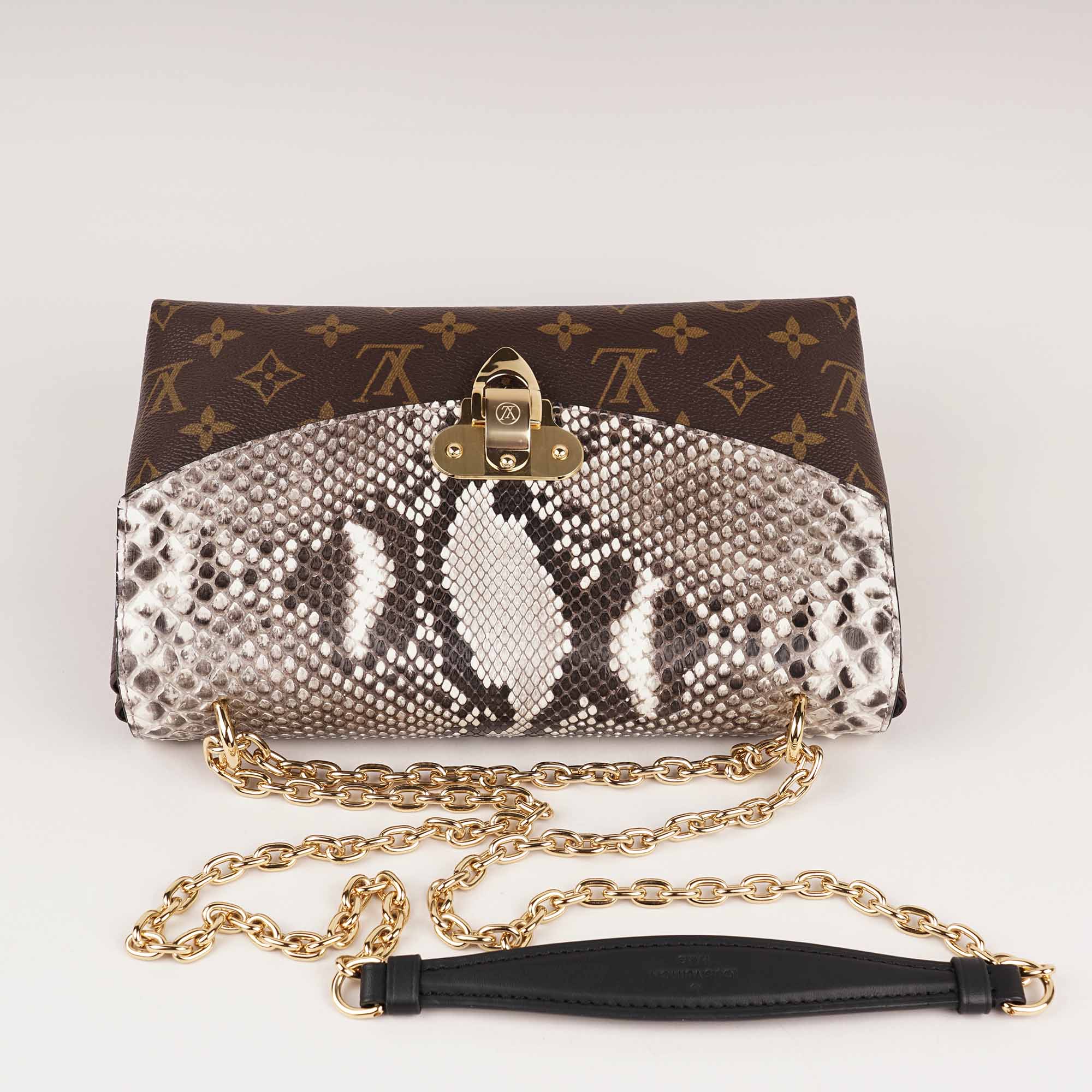 This is an authentic Louis Vuitton Saint Placide Shoulder Bag in Python and Monogram canvas.