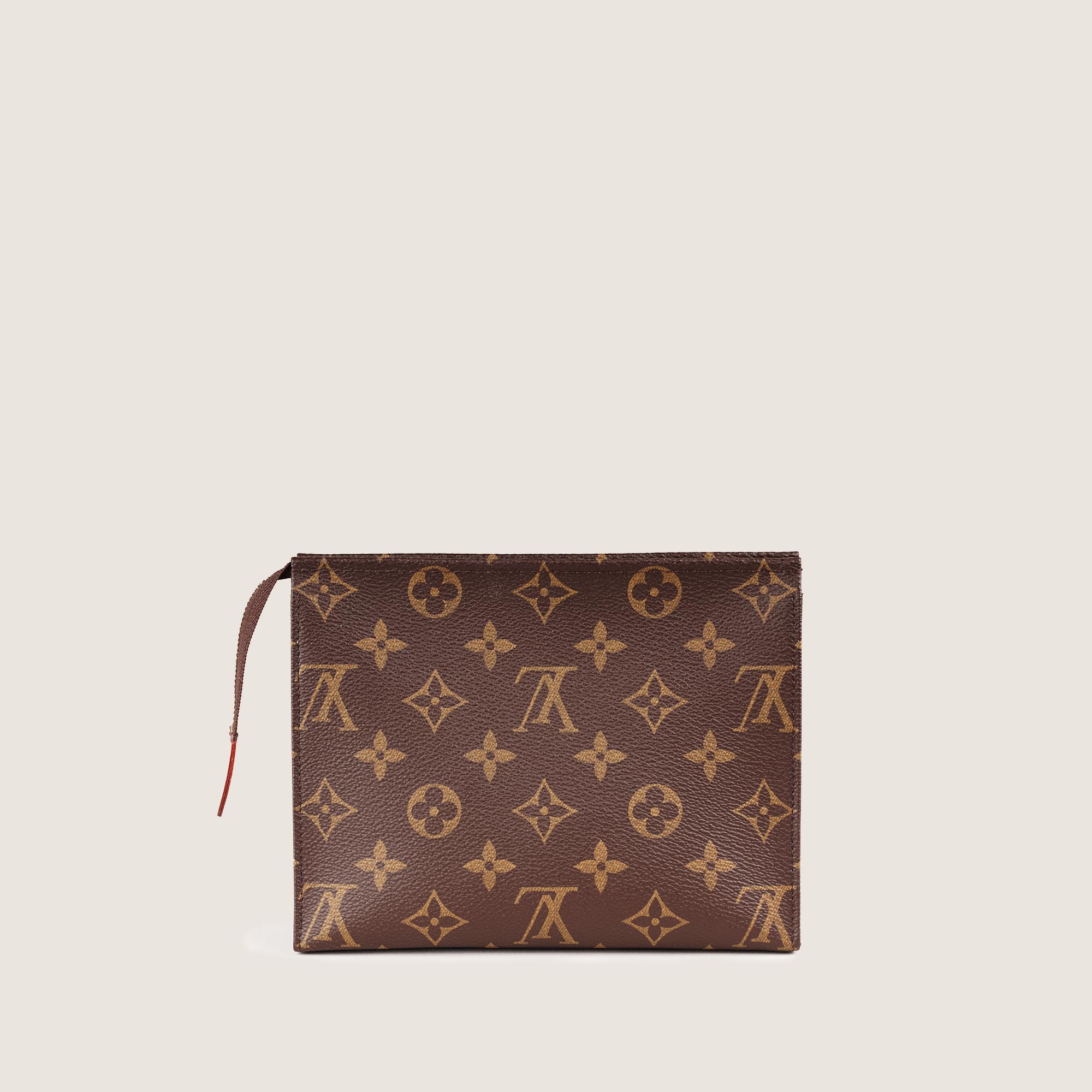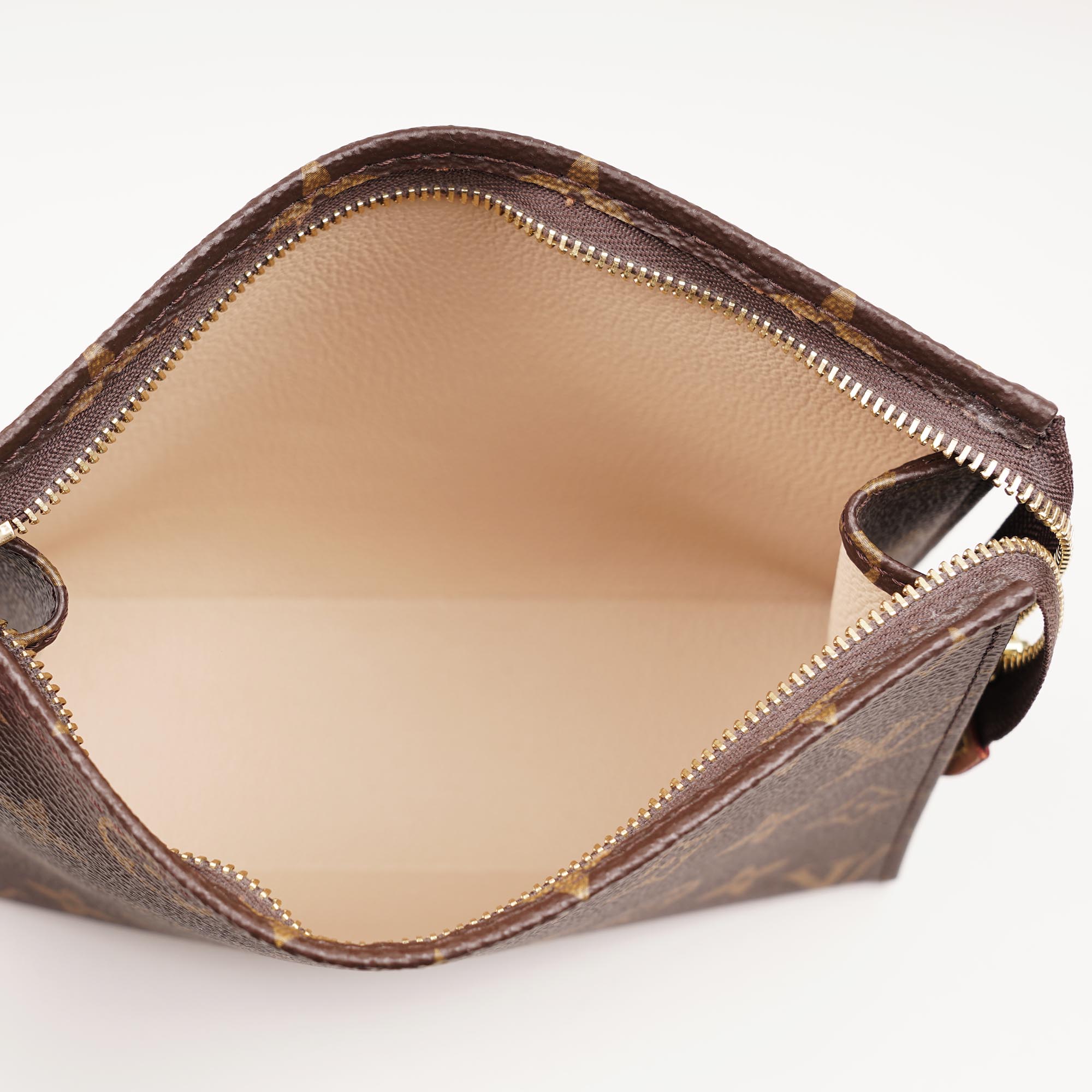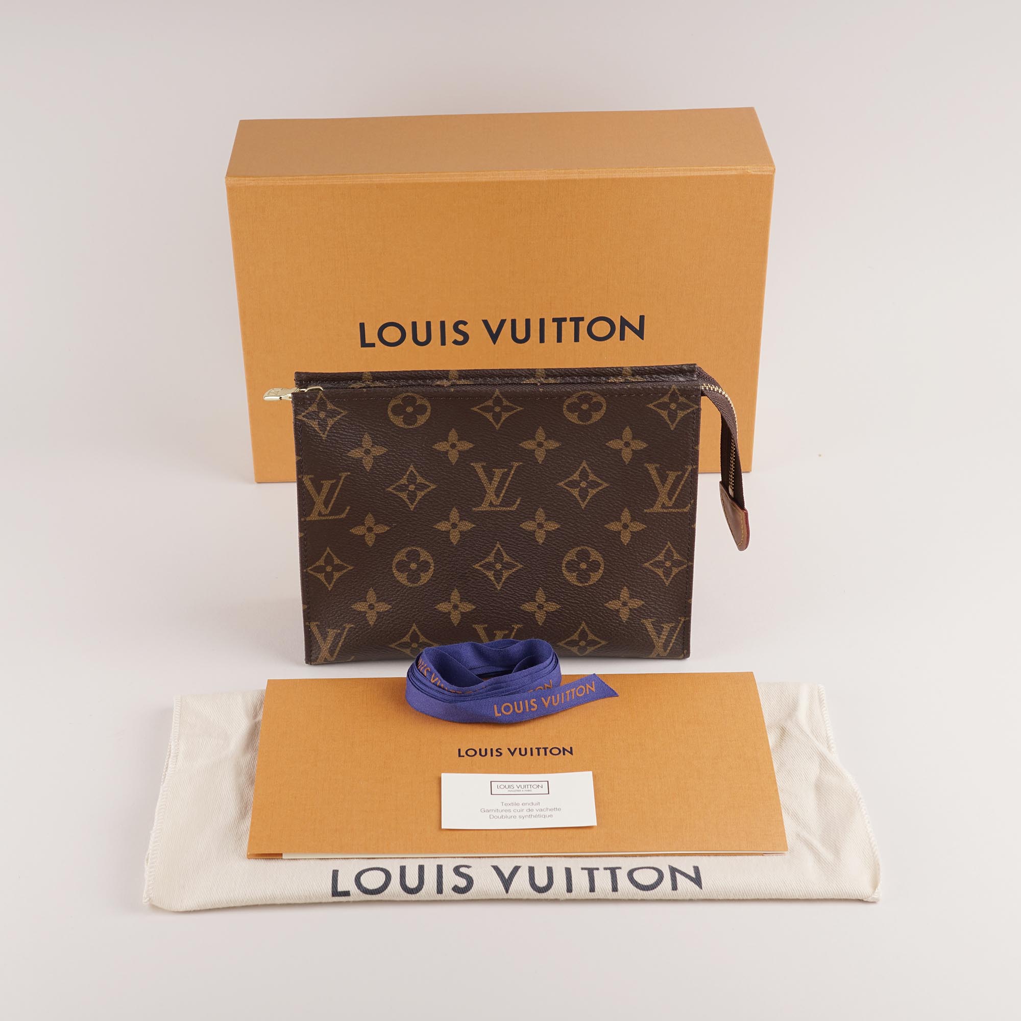 This Toiletry Pouch from Louis Vuitton is the perfect blend of style and functionality. Made from beautiful Monogram-coated canvas. it features a washable interior lining and elegant cowhide-leather trim. The zipped closure keeps your belongings secure. while the gold-colored hardware adds a touch of sophistication. Practical and chic. it's the perfect accessory for any traveler. Don't miss out!