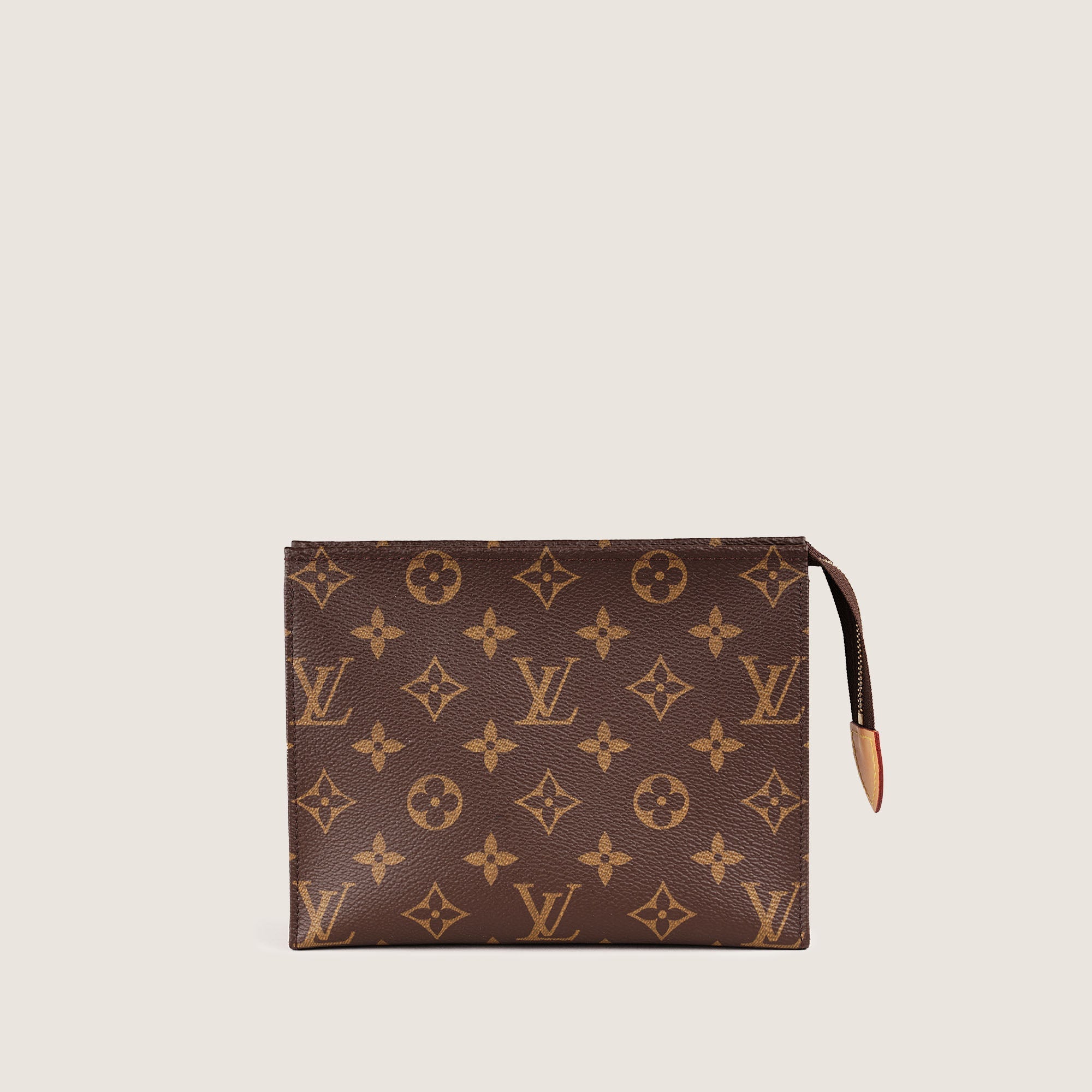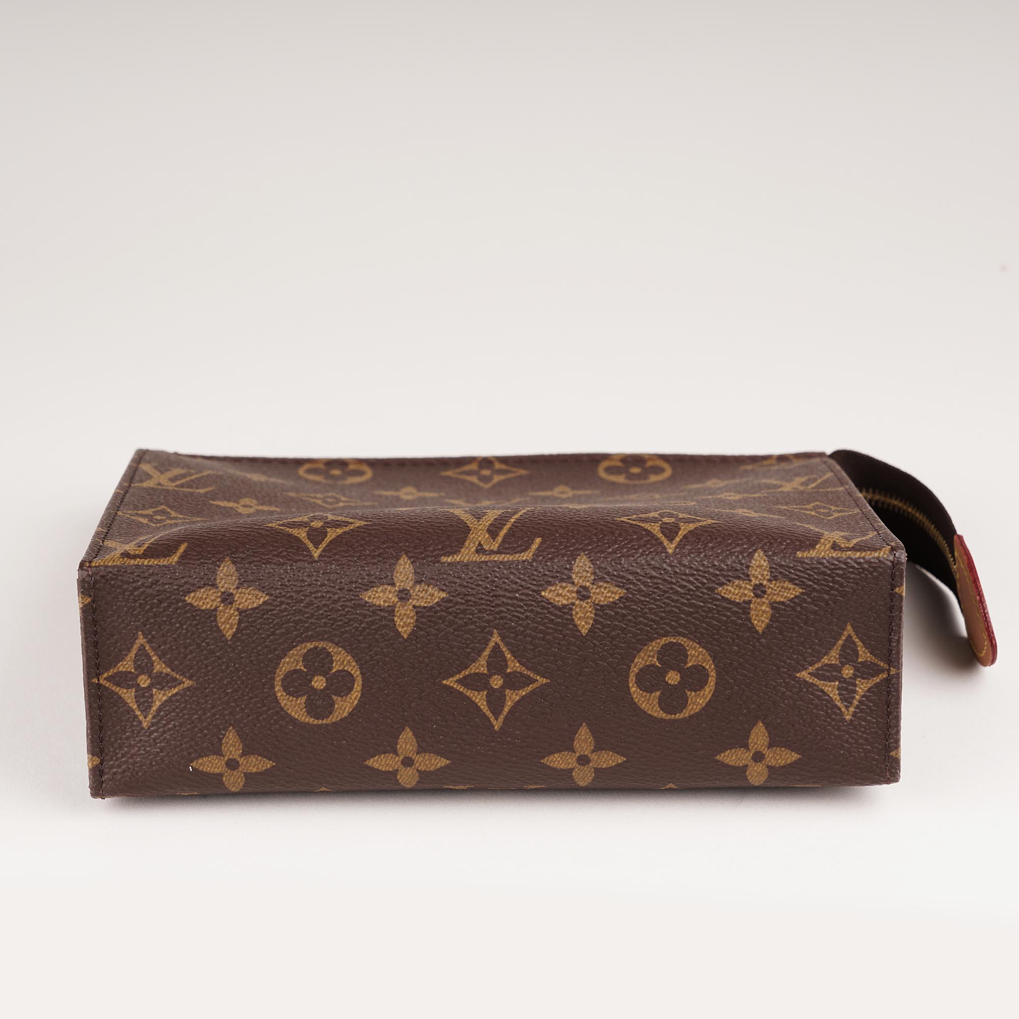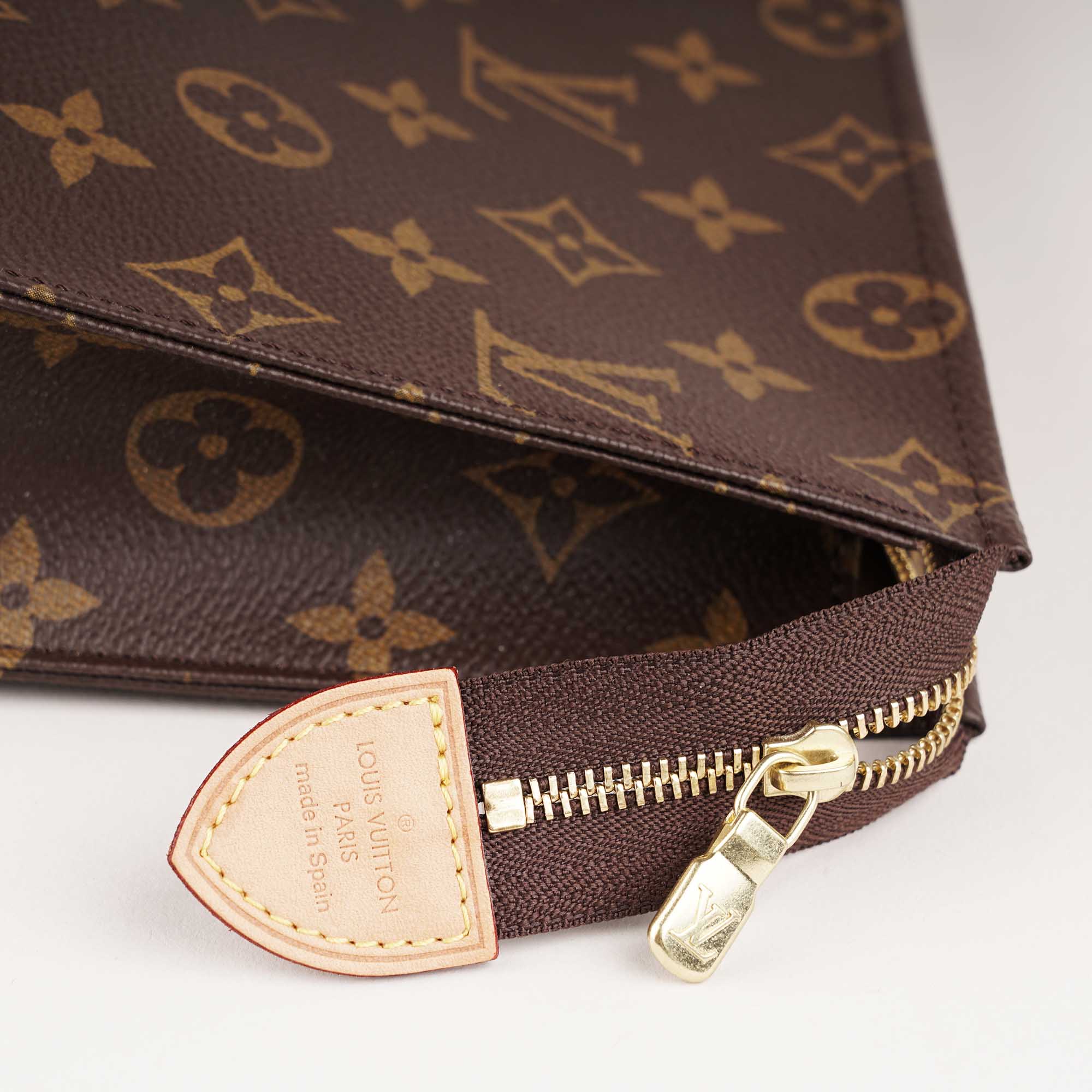 This Toiletry Pouch from Louis Vuitton is the perfect blend of style and functionality. Made from beautiful Monogram-coated canvas. it features a washable interior lining and elegant cowhide-leather trim. The zipped closure keeps your belongings secure. while the gold-colored hardware adds a touch of sophistication. Practical and chic. it's the perfect accessory for any traveler. Don't miss out!
