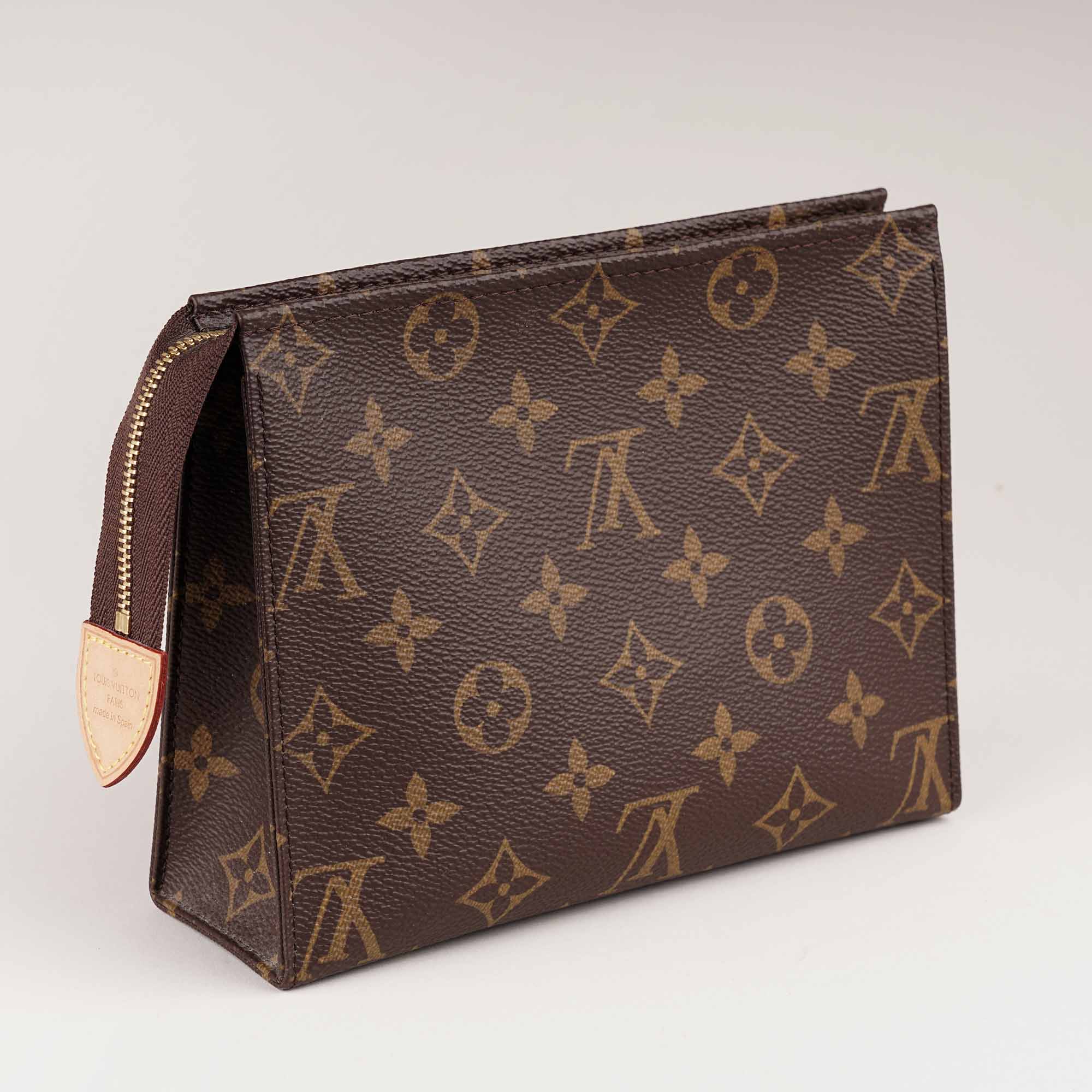 This is an authentic Louis Vuitton Toilet Pouch in Monogram Canvas.
