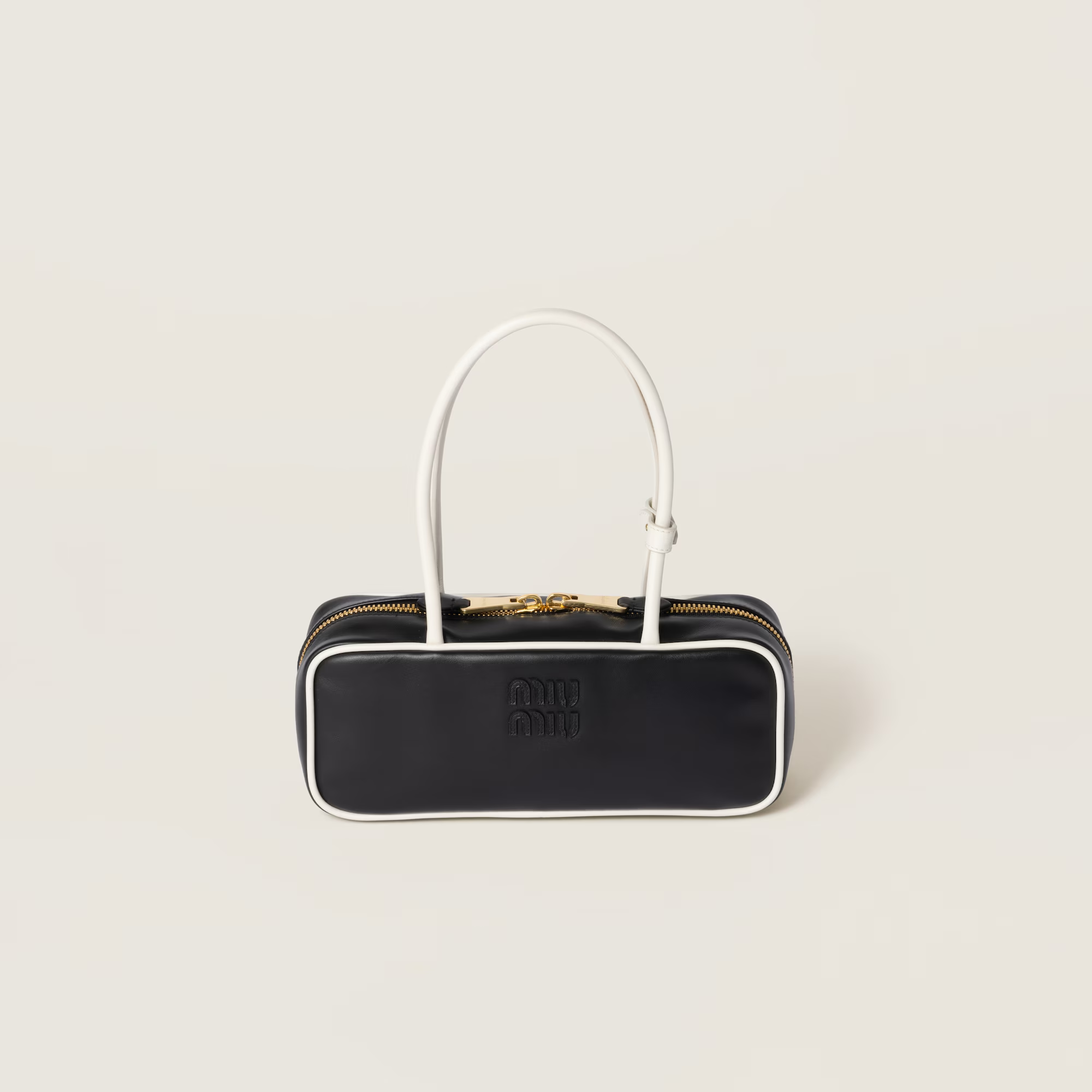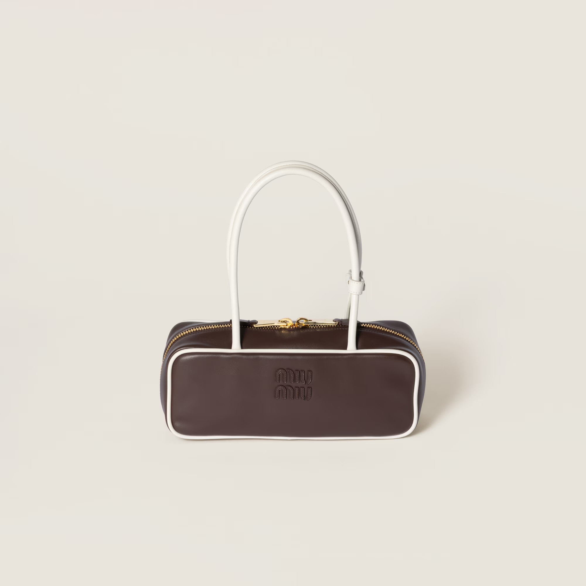 This Beau bag with distinctive. elongated proportions is characterized by its handles and piping in a contrasting color that give it a versatile. athletic character perfect for bold. feminine looks.