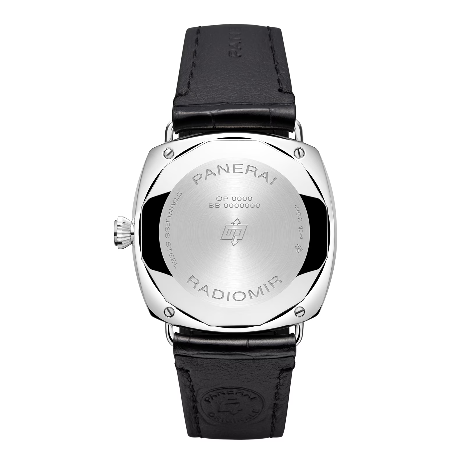 An ode to luxurious yet functional timekeeping. this Radiomir Quaranta model is presented in a robust 40mm polished steel case with a complimentary black leather strap.