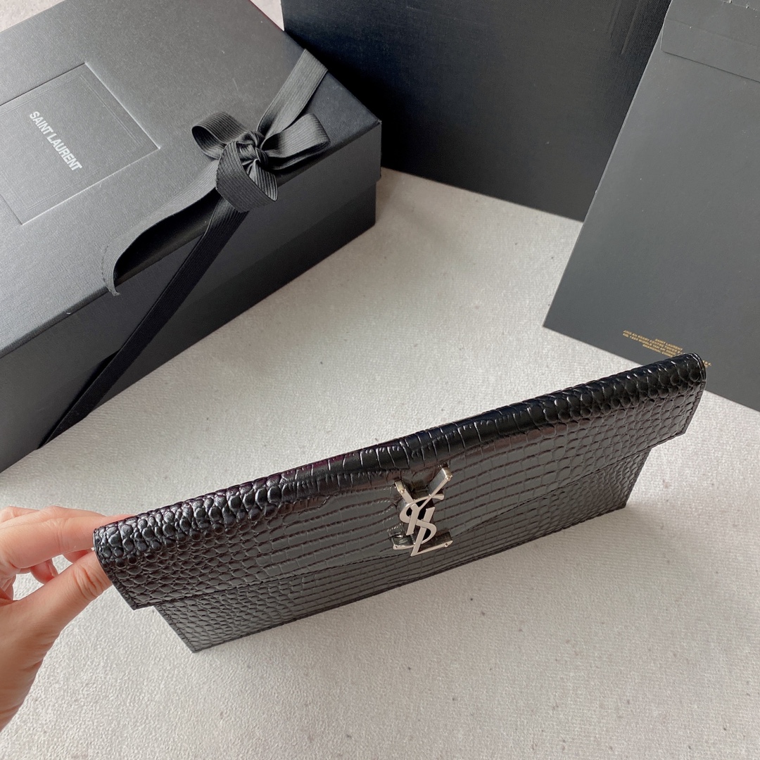 POUCH SMALL ENVELOPE CON PATTA DECORATA CON INIZIALI YSL IN METALLO.